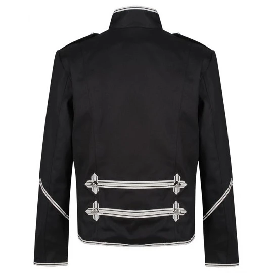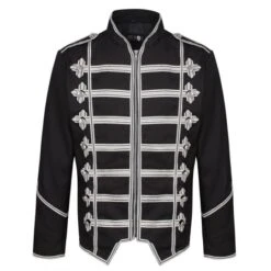 This black gothic parade jacket is designed for men with a pure cotton exterior whereas the inner consists of the polyester lining. It has a mid-style collar with full sleeves and shoulder straps. The detailing can be seen as it is quite evident. Furthermore, its front zipper closure makes it pretty comfortable.