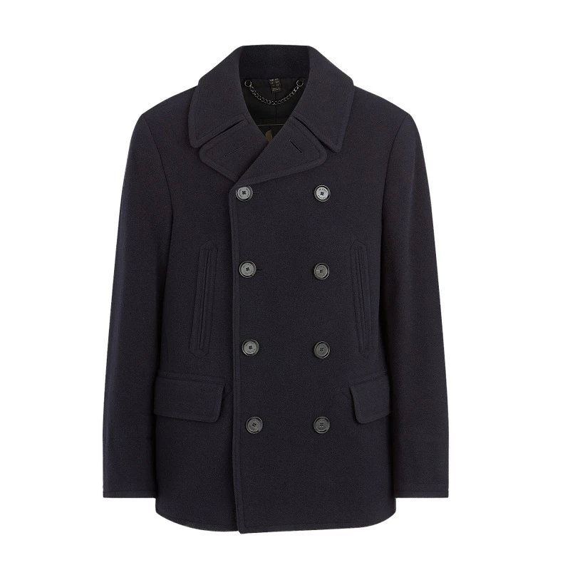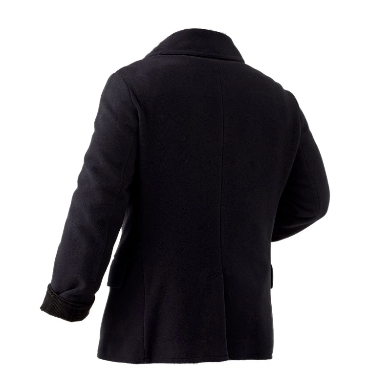 Double Breasted Naval Wool Dark Blue Pea Coat For Men