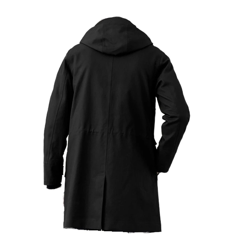 This pea coat is designed in button closure style coupled with a shirt-style collar and is available in a removable hood choice. It has long fitted sleeves accompanied with two open hem cuffs which have the option of adjustable latches. Our well-crafted pioneer navy pea coat has a long-length trench style coat with twin pockets on the side.