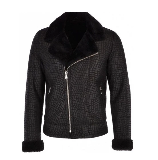 - Collar: Lapel shearling collar